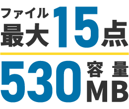 ※画像データ、レシート画像データ、動画データを合わせて添付する場合は、上記のとおり最大ファイル数15点、容量最大530MBとなります。